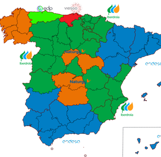 El mapa no es 100% exacto y es simplemente para ayudar a identificar rápidamente en que zonas se encuentran activas las mayores distribuidoras. Hay provincias que se reparten entre varias distribuidoras, el mapa sólo muestra las que tienen mayor presencia en la zona.