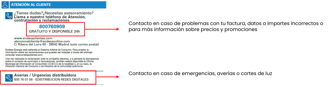 Si tienes contratada la luz con alguna de estas empresas y te fijas en la factura verás que aparecen dos números de contacto diferentes, uno para la parte comercializadora y la otra para las averías de parte de distribuidora.